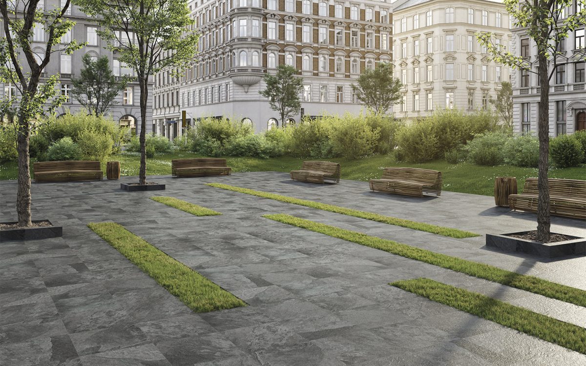 Axis is a 20 mm thick porcelain stoneware tile specially designed for outdoor use. Its high resistance to breaking load and stress, as well as its extraordinary anti-slip performance, make Outdoor 20 the ideal stoneware for outdoor environments, both public and private.