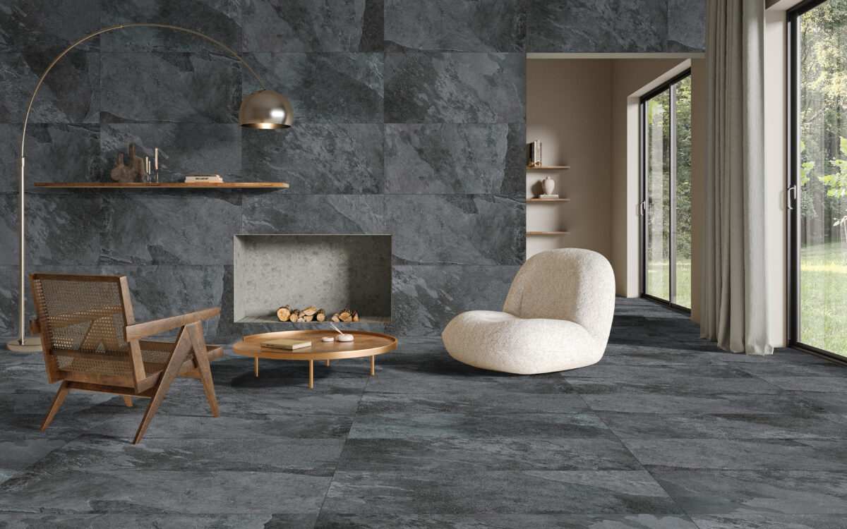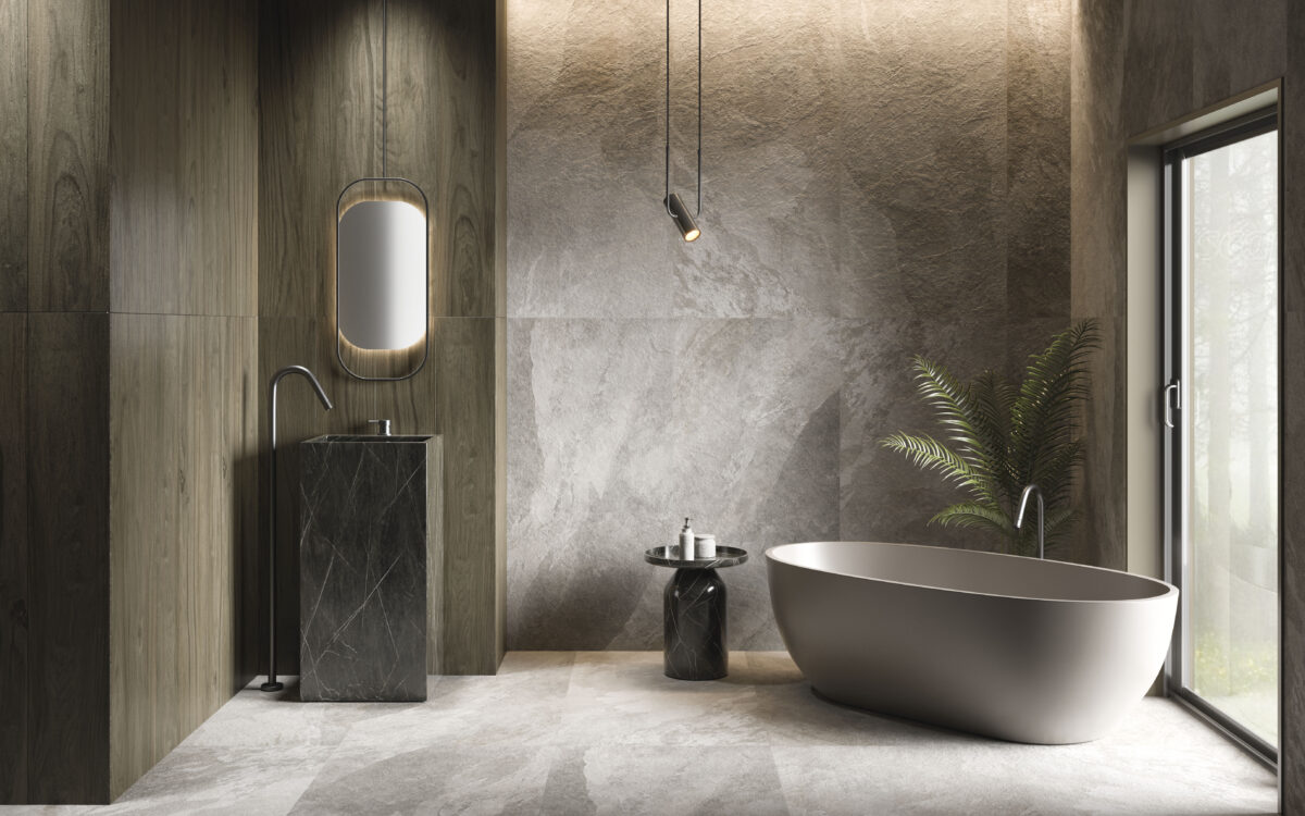 An elegant series, with expressive textures that reproduce the stony character of slate and its fascinating scale effects, offers us a natural yet sophisticated decoration.