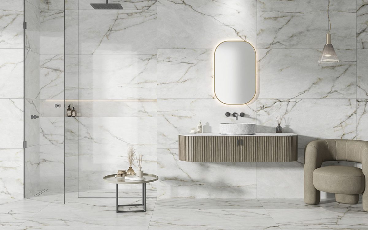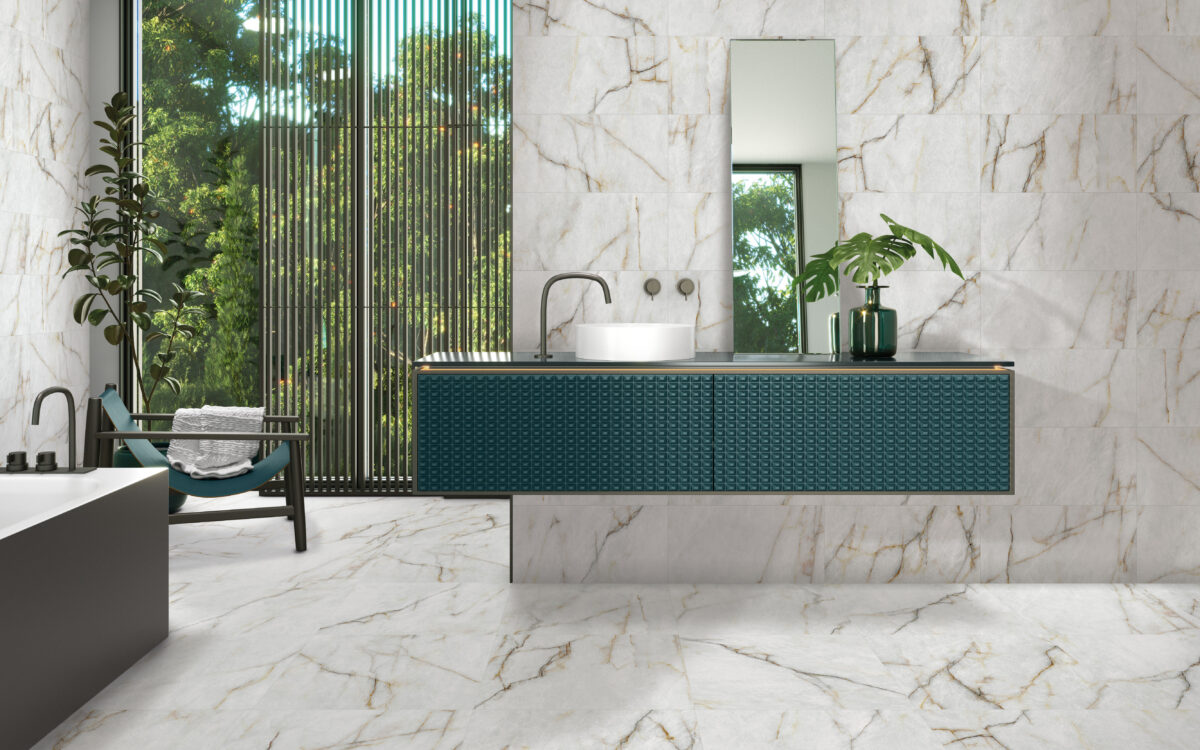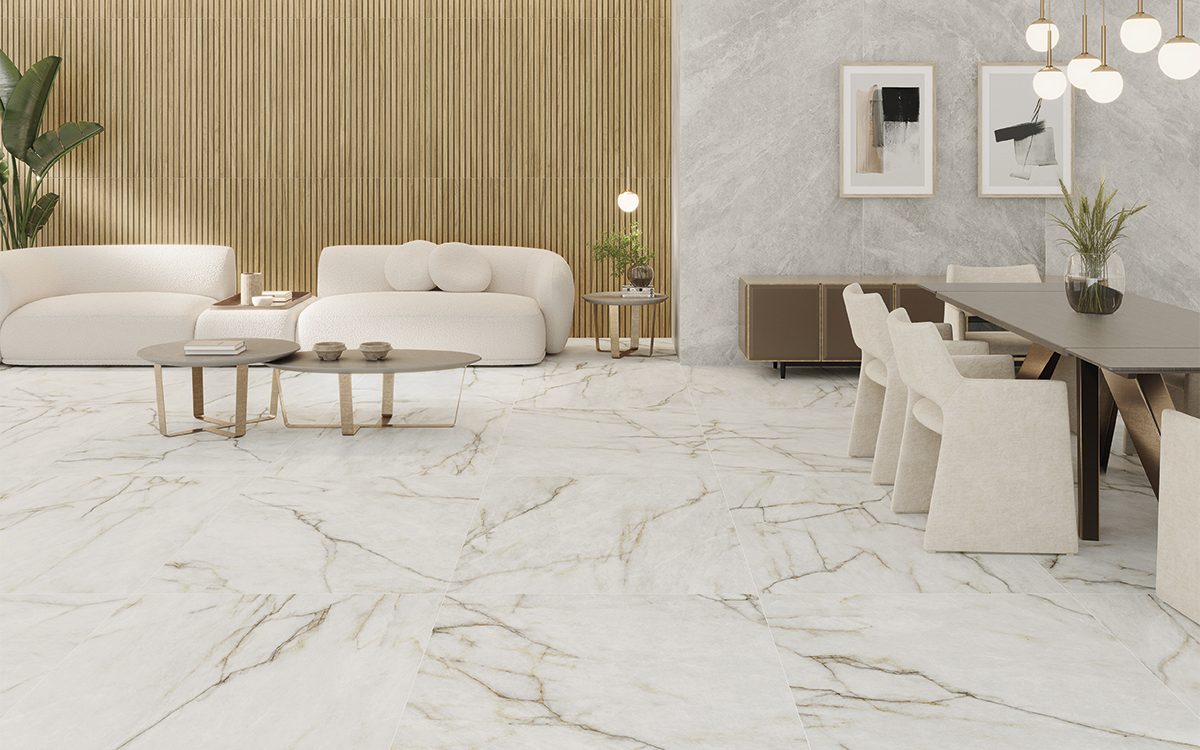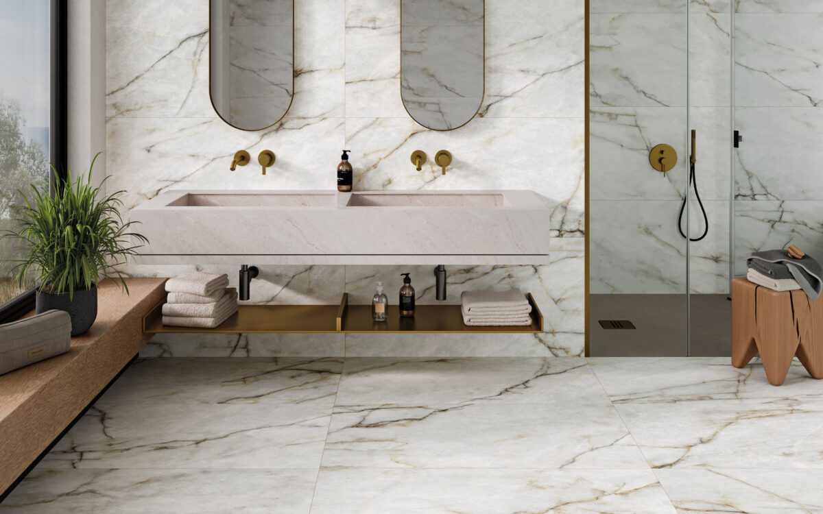 Bay’s design approach aims to achieve a fluid and contemporary look through the use of black, gold and reddish veins. These veins are applied with precision to create a play of light and shadow, thanks to the shimmering reflections embedded in the design. The result is a sense of movement and depth that adds an extra level of complexity and sophistication to the interior design of the home.