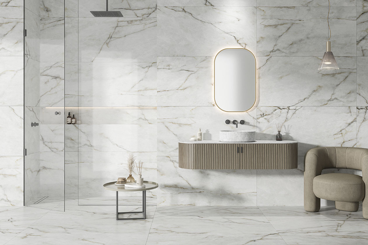 Bay is a white quartz that stands out for combining the natural elegance of rock with the robustness and versatility of quartz. A super soft textured collection, which is not only perceived visually, but also experienced tactilely.