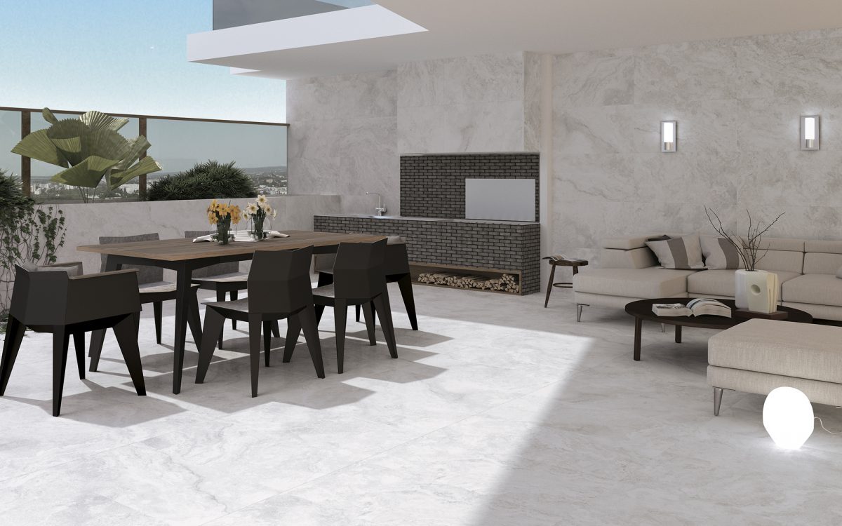 Chrono es una colección ideal para revestir suelos y paredes de ámbito interior y exterior con la posibilidad de crear soluciones atractivas y elegantes en espacios privados y residenciales, públicos y comerciales –hoteles, restaurantes y tiendas. Articulada en dos tonalidades frías –white y grey– y una tonalidad sensiblemente más cálida –cream–, este gres porcelánico nos brinda un amplio abanico de posibilidades tanto compositivas como sensitivas al alcance de nuestra mano.