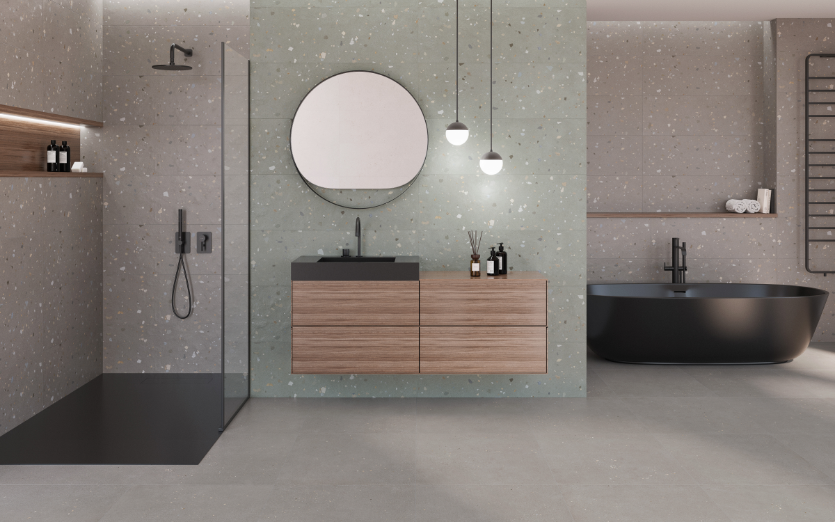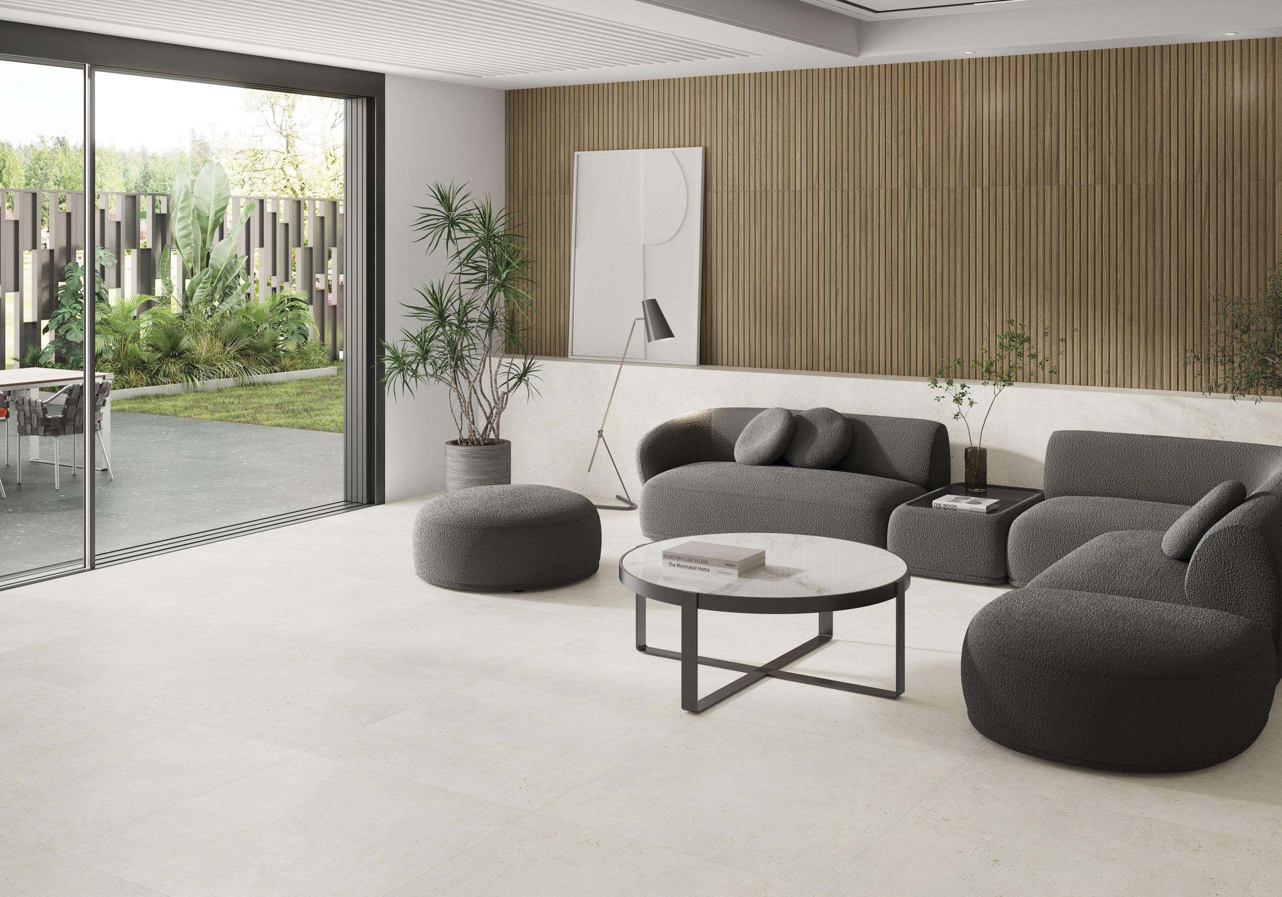 This series has four shades (White, Ivory, Grey and Anthracite) and four decors (Joy White, Joy Ivory, Joy Grey and Joy Anthracite). It is also available in different formats, both for indoor and outdoor spaces.
