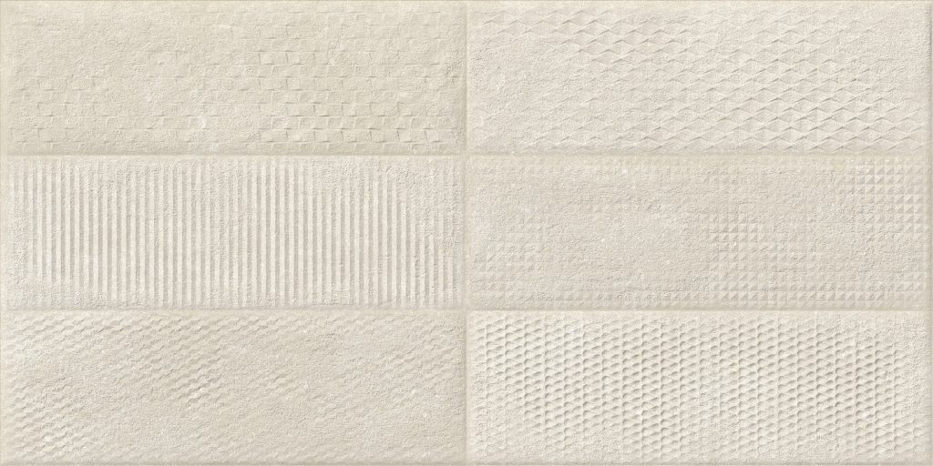 The Desire relief, representing a 6-piece muretto with distinct micro-textures, adds a unique dimension to the collection, while the Kiss décor pairs warm and cool colours, creating a sophisticated modern hydraulic design.