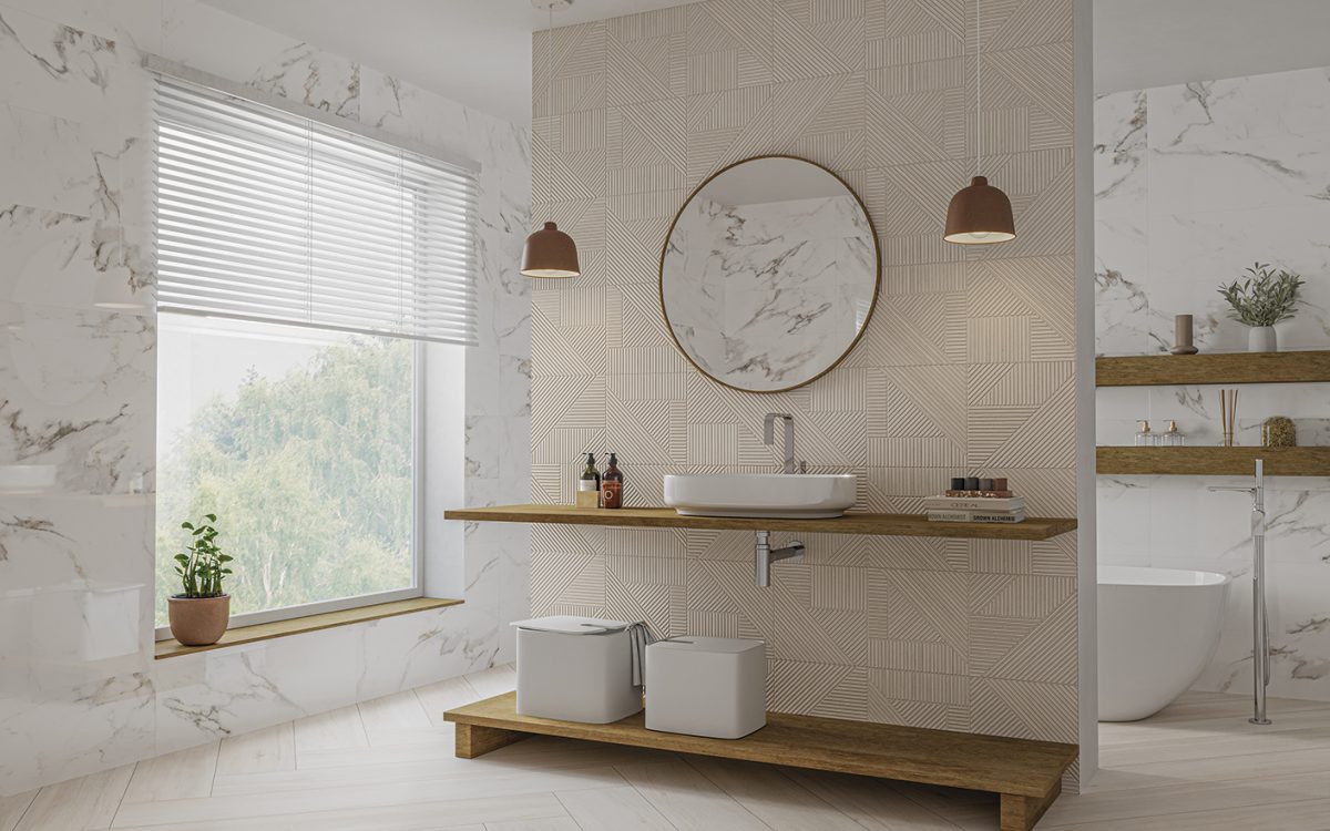 Porcelain tile available in 25×150 cm RC, 20×120 cm RC, 22,5x90cm; and white body in 33×100 cm RC.
