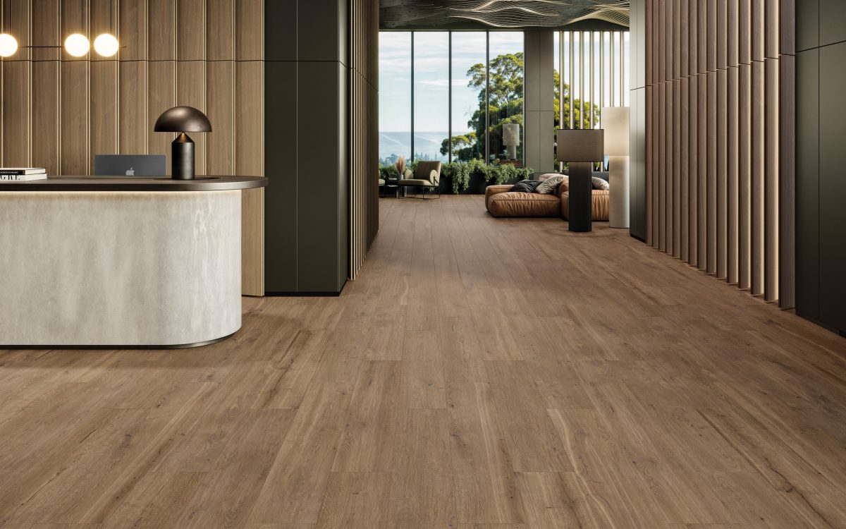 ROVERE OMBRE is the new series that represents a creative and elegant reinterpretation of oak wood in porcelain stoneware. This series is designed to captivate lovers of warm woods, with a rustic and soft look, who are looking for an elegant and durable option for their spaces.